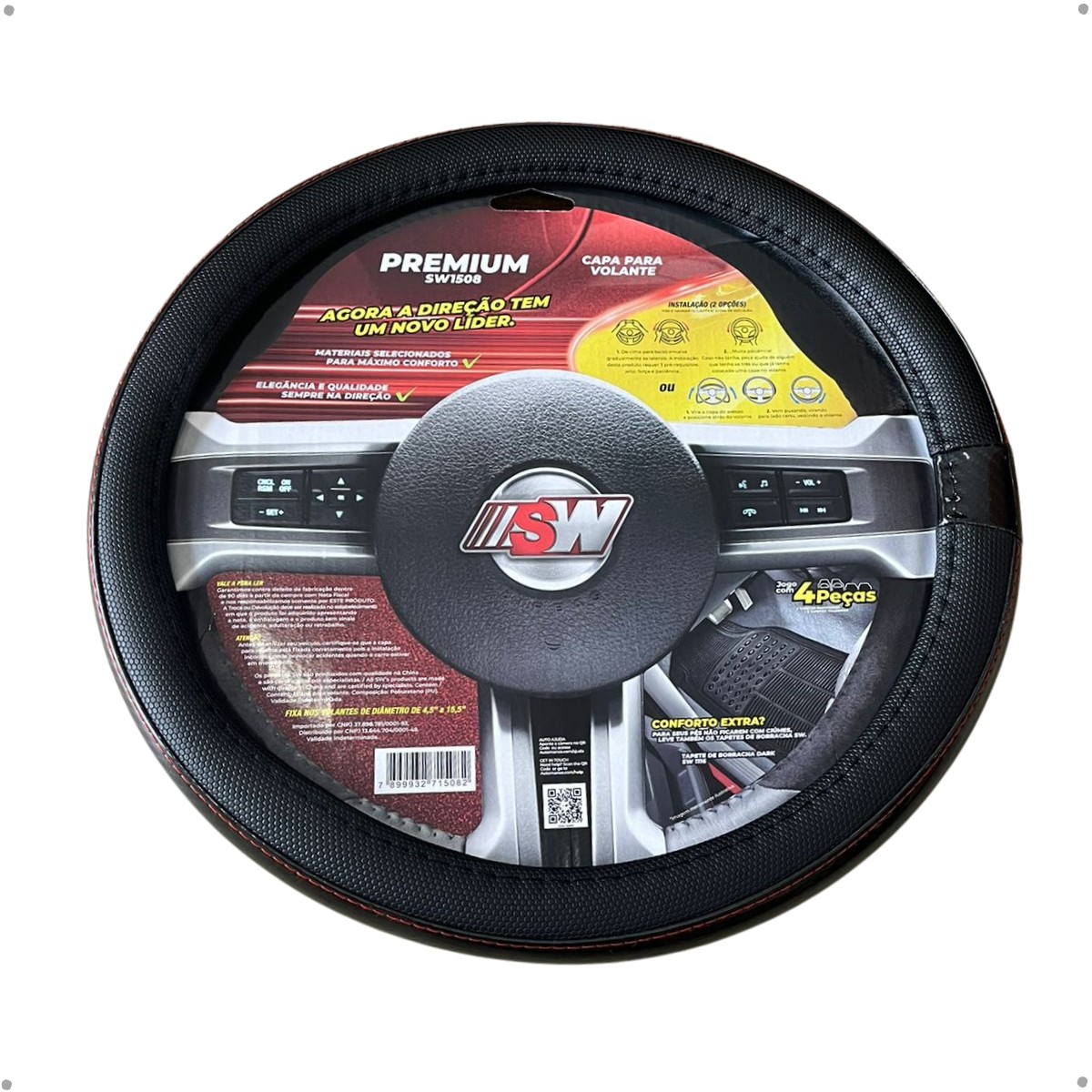 Capa De Volante Premium PU Preta C/ Costura Vermelha 38CM SW - SW1508