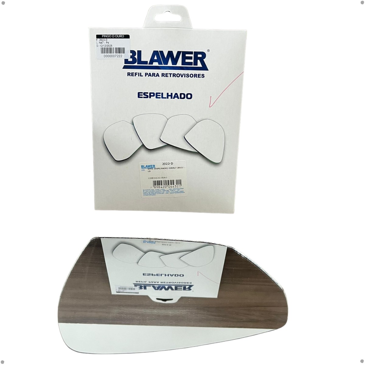 Espelho Lado Direito (Refil) BLAWER - 2022-D para reposição, ideal para quem busca boa visibilidade, encaixe correto e segurança no dia a dia.