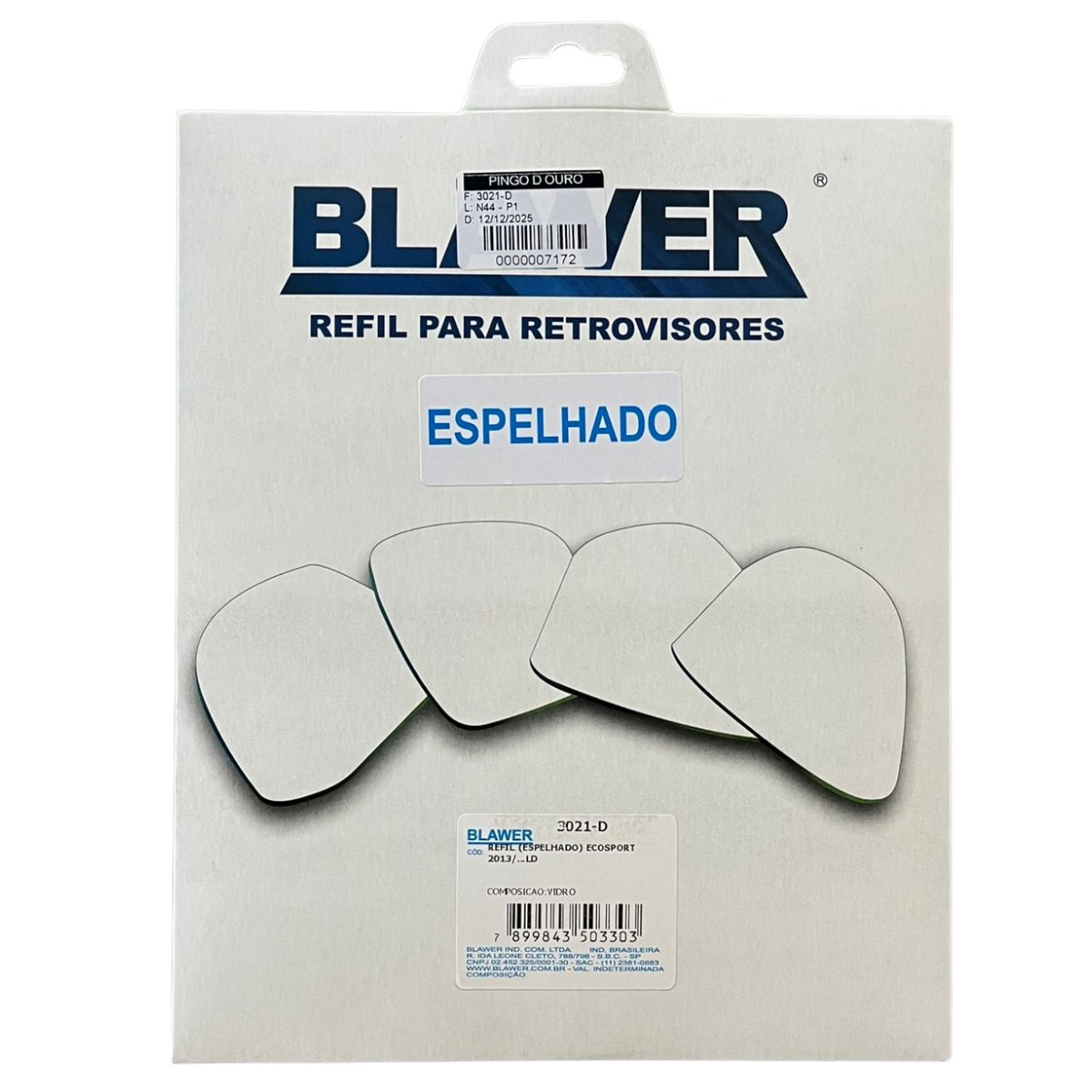 Espelho Lado Direito (Refil) BLAWER - 3021-D para reposição, ideal para quem busca boa visibilidade, encaixe correto e segurança no dia a dia.