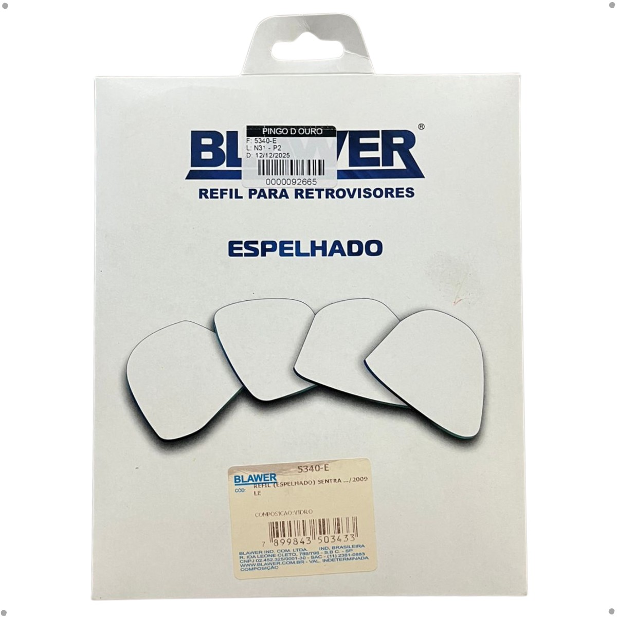 Espelho Lado Esquerdo (Refil) BLAWER - 5340-E para reposição, ideal para quem busca boa visibilidade, encaixe correto e segurança no dia a dia.